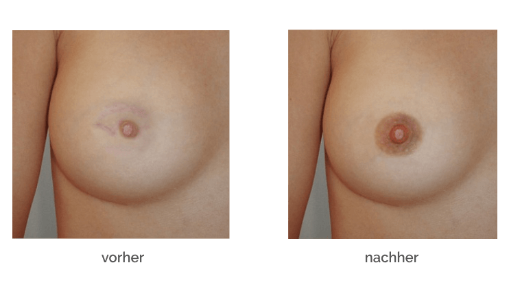 Beispiel einer Brustwarzenrekonstruktion, vorher und nachher